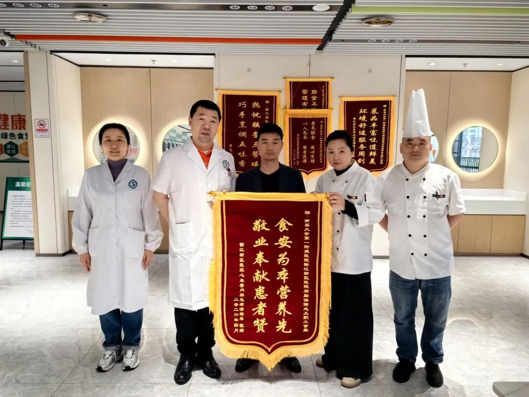 近日,一面写有“食安为本营养先,敬业奉献患者赞”的锦旗,送至赣江新区人民医院食堂。送旗者是心血管内科住院患者张先生,他紧握食堂工作人员的手,连连道谢:“住院这些天,每顿饭都吃得很舒心,你们就像家人一样。”