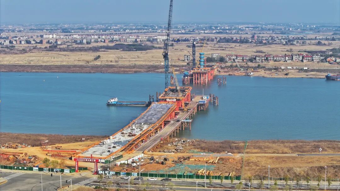 今日,汇贤大桥工程首节段钢梁——8#墩侧钢混结合段钢梁块段开始吊装,标志着主桥上部结构施工开启新阶段吹响了向新年施工任务目标前进的冲锋号角