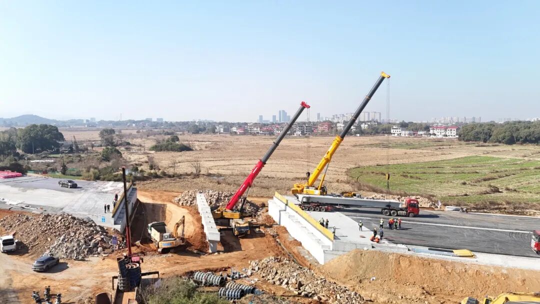 1月13日,在项目团队的精密组织和协作下,阳光大道二期工程建设迎来关键节点:一片长达20米、重达66.01吨的预制箱梁在吊车的协同作业下精准落位,平稳架设在虎庄2号桥左幅1-1#支座上。