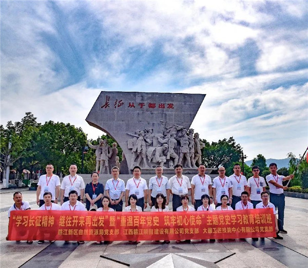 为深入推进党史学习教育,热烈庆祝中国共产党成立100周年,7月9日-11日,赣江新区自然资源局党支部与赣江项目建设有限公司党支部、大国工匠技能中心有限公司党支部赴于都、石城、兴国三地联合开展“学习长征精神、继往开来再出发”暨“重温百年党史、筑牢初心使命”主题党史学习教育。新区自然资源局二级巡视员龙象,新区自然资源局党支部书记、局长高骅,项目公司党支部书记边文彬,大国工匠公司党支部书记赵鹂和各支部全体党员参加活动。