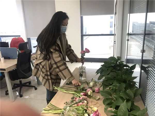 鉴于新冠肺炎疫情还未解除,为响应疫情防控工作的要求,减少不必的聚集,集团工会提前准备插花教学视频和鲜花,让女职工们节日当天各自在家完成插花活动。